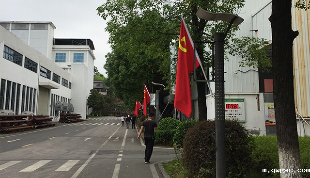 一进qwgsc的大门,便被庆祝建党百年、传承红色基因、弘扬延安精神”横幅所震撼,一路从大门走到行政办公楼,都间隔树立着党旗和国旗,鲜红的党旗在qwgsc厂区迎风飘扬,象征着共产党人不朽的誓言,履行着全新全意为人民服务宗旨。