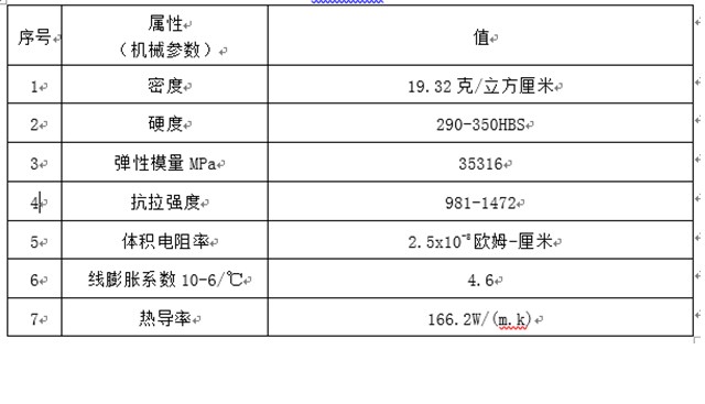 碳化钨的硬度大概是钢的两倍,密度比钢或者钛的密度大很多。具体物理参数参见下表: