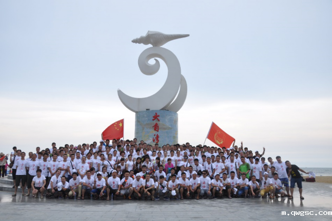 员工穿上整齐划一的绿色团队文化衫,象征着我们qwgsc的生命力,充满希望充满创造力。我们坐高铁绿色出行,眼里满满的对海陵岛美景的憧憬。