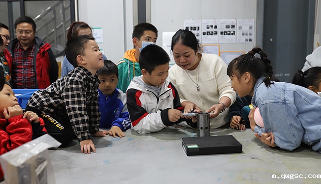 简单介绍后,员工和家属一起走进生产现场,依次参观了硬面、磨加、型材、机加车间,切身的感受qwgsc产品的生产制造的全过程,可爱的孩子更是在检验室的现场充当了一次“小小检验员”,体验用精密测量工具检验产品尺寸的乐趣。