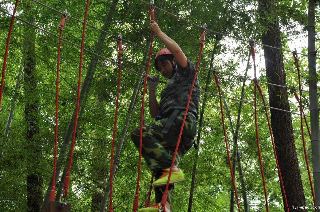 丛林穿越是拓展训练的必备项目之一,挑战你对高空的恐惧感以及你的协调能力和平衡能力,整个项目汇集了力量、毅力、高空、速度等户外运动所有元素。通过这次训练不仅给团队成员带来了感官上的刺激和挑战,同时让我们体验了大自然原始森林带来的健康和新奇感受。看,上面正是我们qwgsc的女中豪杰在丛林冒险,稳重、谨慎,没有丝毫因恐惧害怕而后退。