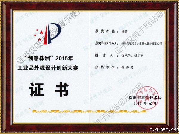 “创意株洲”2015年工业品外观设计创新大赛优秀奖